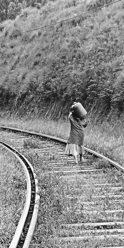 Une toute pte dame portant une charge énorme mais avec un sourire!