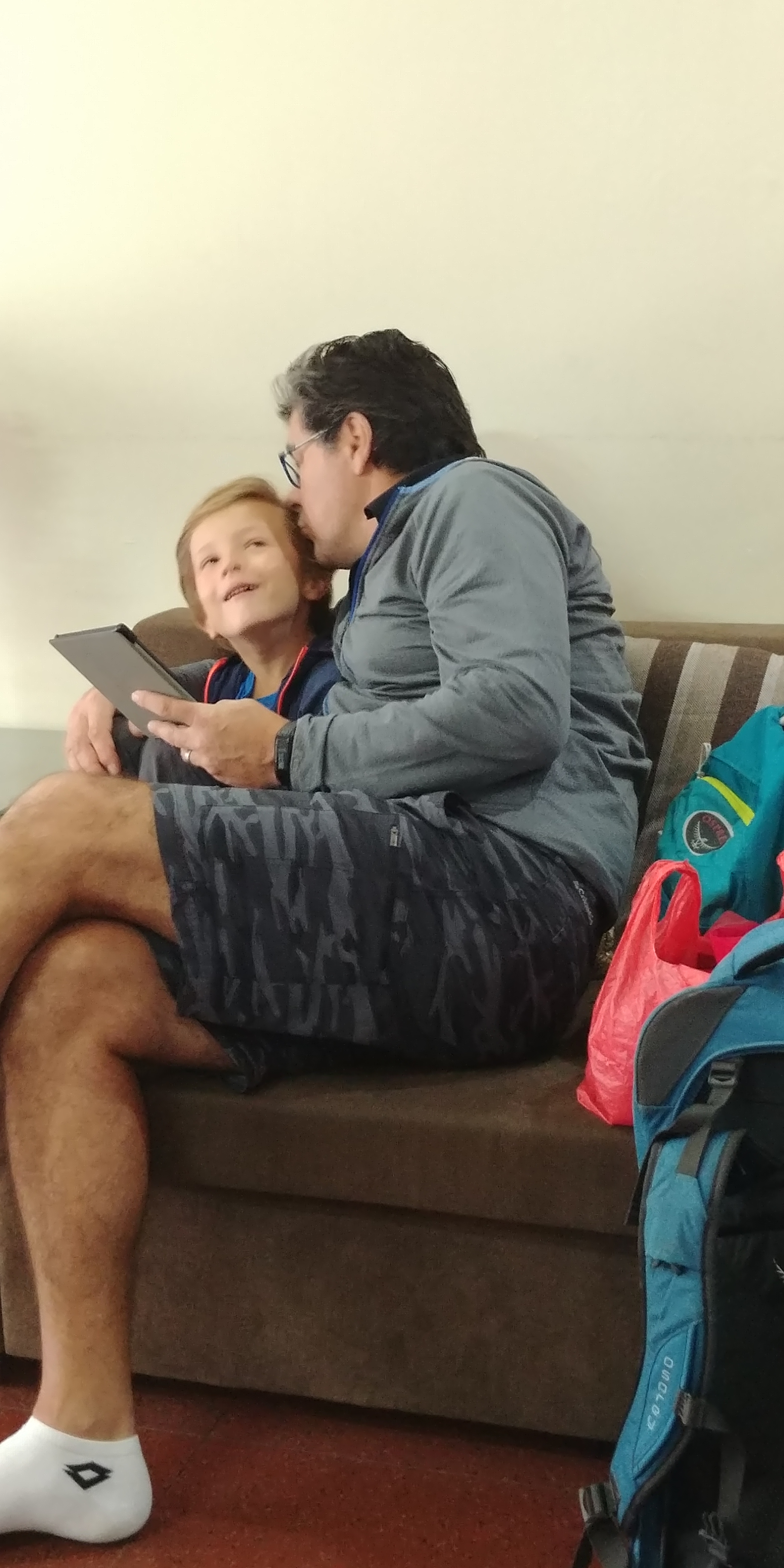 26 janvier 2018 2080 × 4160 Réveil matinal, on attend la navette pour partir 2 jours sur notre bateau. Alors histoire et bisous pour patienter.