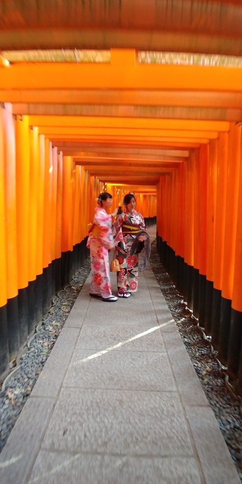 Balade au sanctuaire Fushimi-Inari, à 2 pas de Kyoto (ou plutôt à 2 stations de métro mais en tant que famille boulet, nous avons payé pour aller au bout de la ligne…pourtant on ne se débrouille pas trop mal en général !). Magnifiques Torii (je vous laisse voir les photos), nombreuses personnes habillées en kimono, balade de 3 heures hors du temps (bon, on s’est perdu un peu aussi pour prendre les petits chemins éloignés, merci chéri 😊), magique.