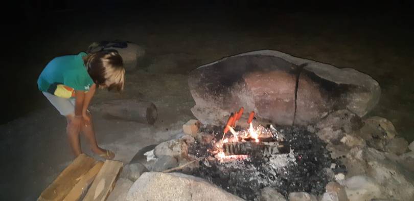 Replantage de tente et barbecue. Saucisses et chamallows sont au programme.