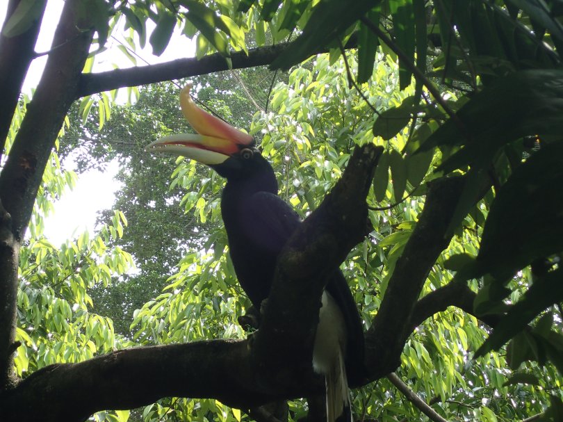 L’oiseau « péteur » ou plus sérieusement le calaos rhinocéros.