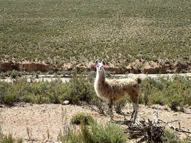 Des lamas sur le bord de la route.