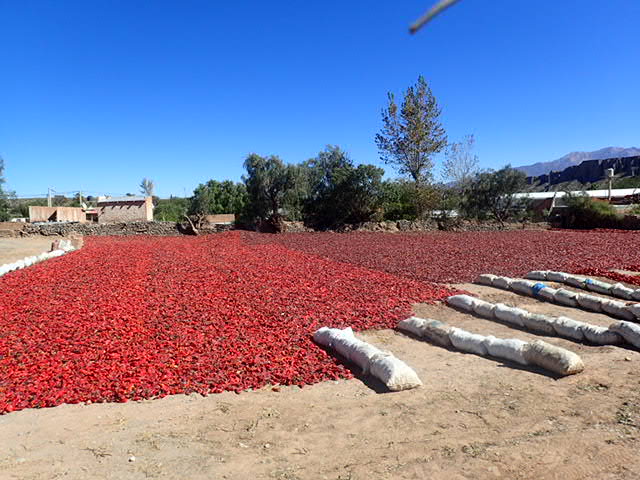 Les piments sèchent le long de la route.