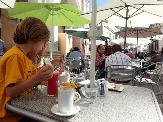 21 avril 2018 640 × 480 Nous rendons la voiture le lendemain matin et terrasse en attendant l’heure de notre car.