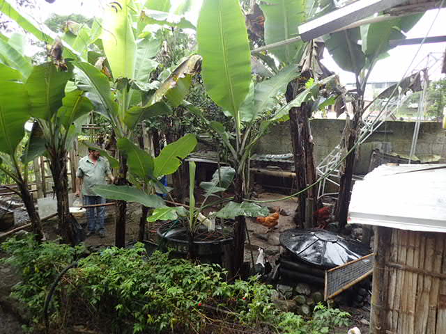 Notre hôte et sa basse-cour à la grande joie de Simon.
