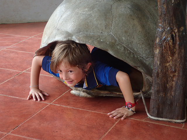Photos avec une tortue des Galapagos « Charline et Vincent; Céline, Goupil et Naël; Mersou et Joël; Anne & Family »