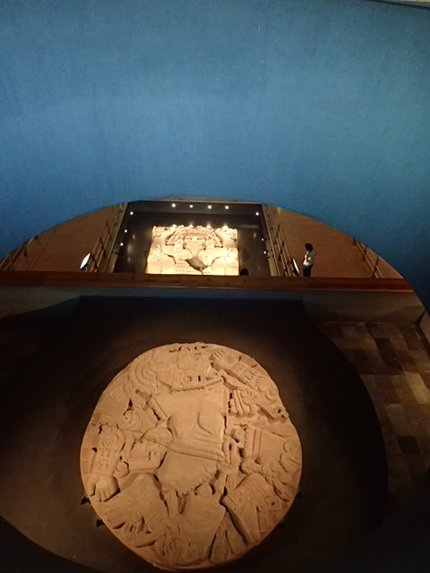 1 juin 2018 480 × 640 L’immense pierre ronde des sacrifices et la pierre derrière de la déesse Coyolxauhqui.
