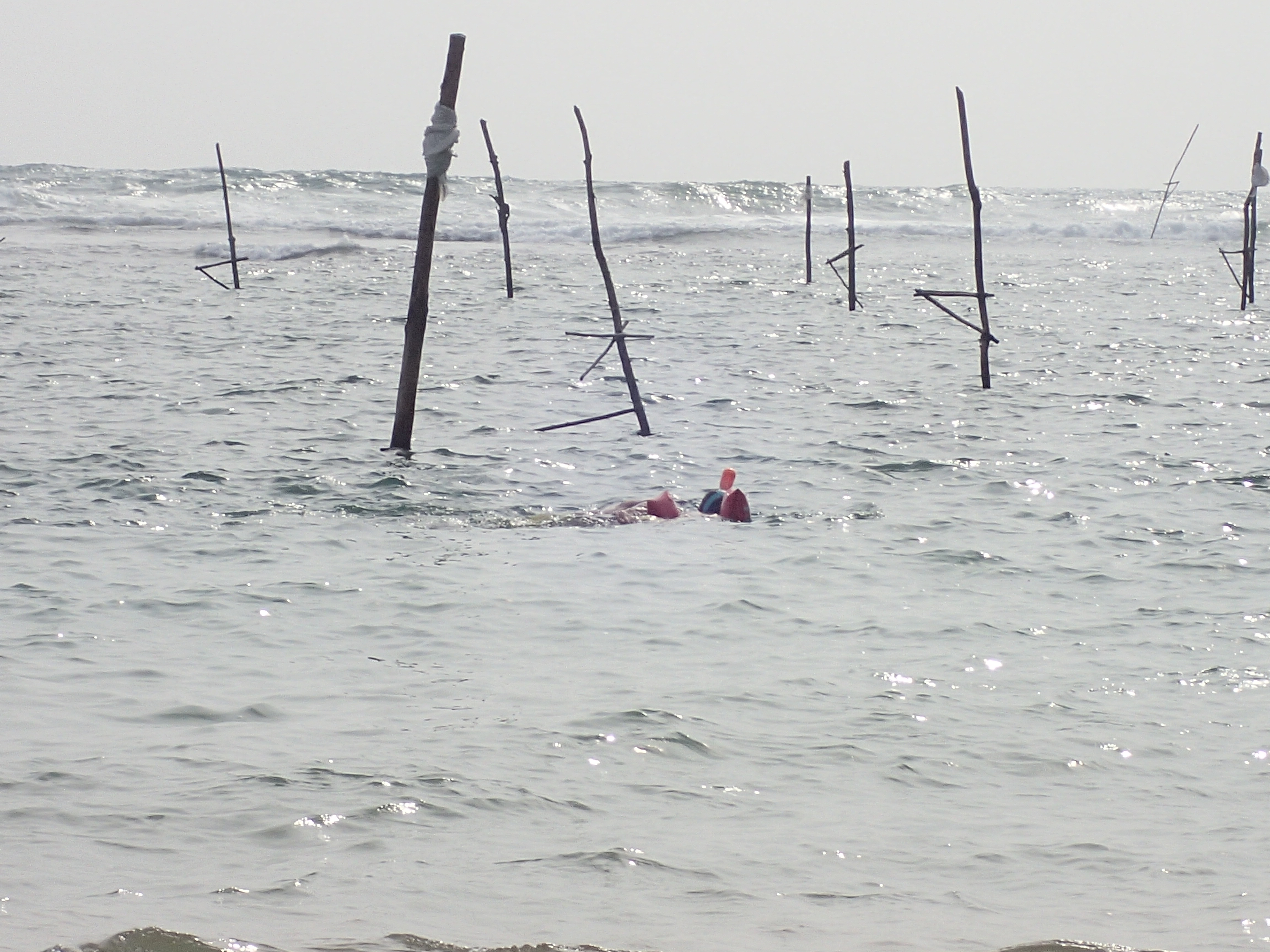 Les poteaux pour les pécheurs et Simon à la recherche de tortues.