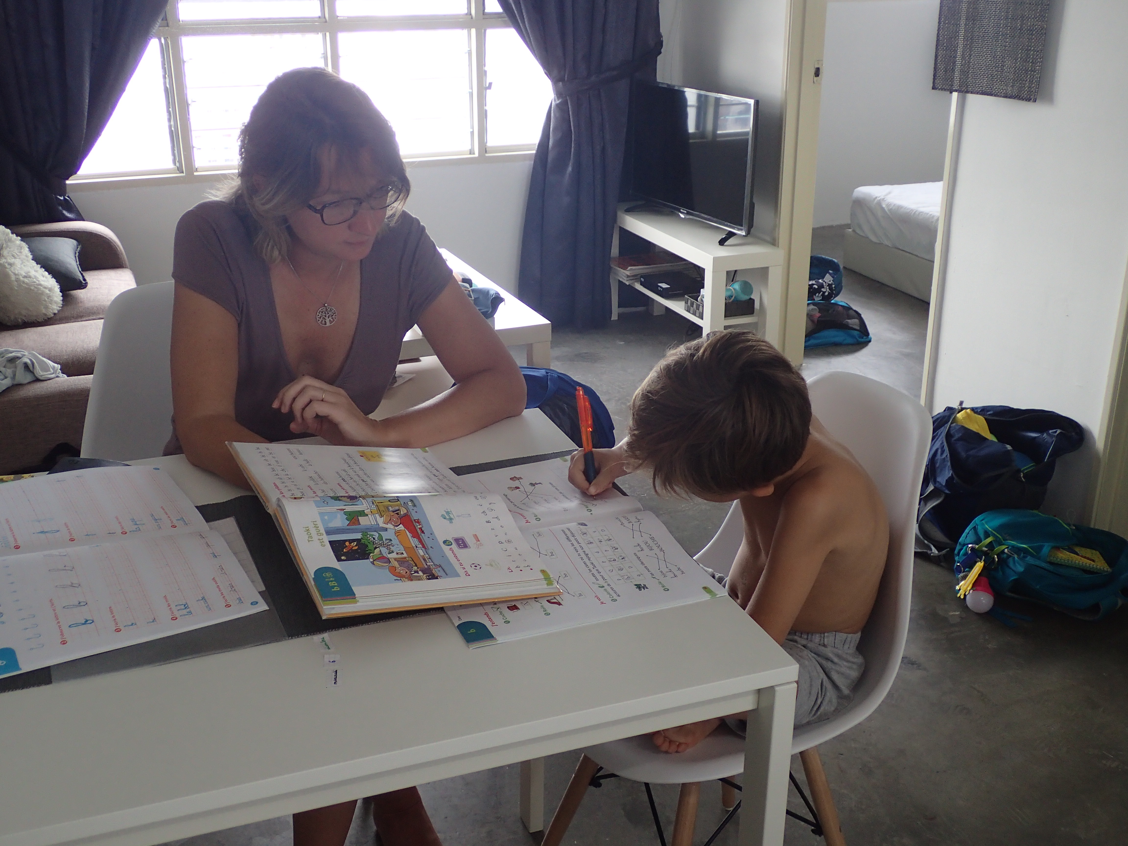 L’école du matin. Ca se passe super bien.