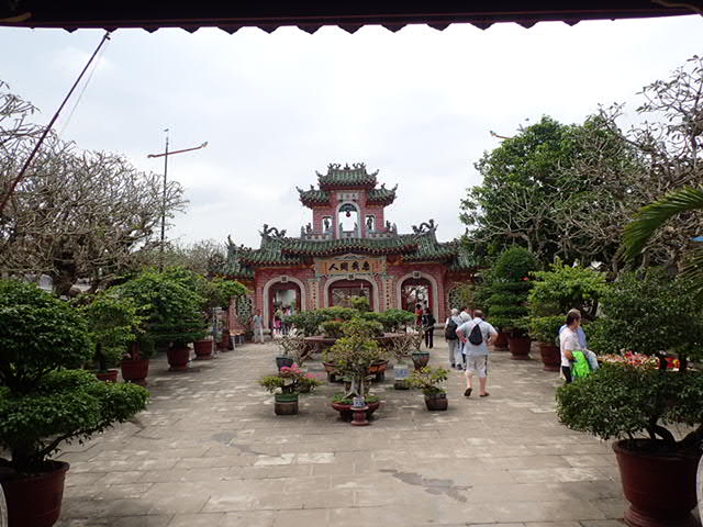 La cour avec ses bonsaïs et son porche d’entrée.