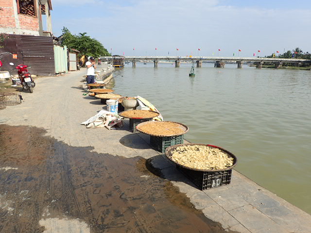 Derrière les stands séchage de poissons et divers produits .
