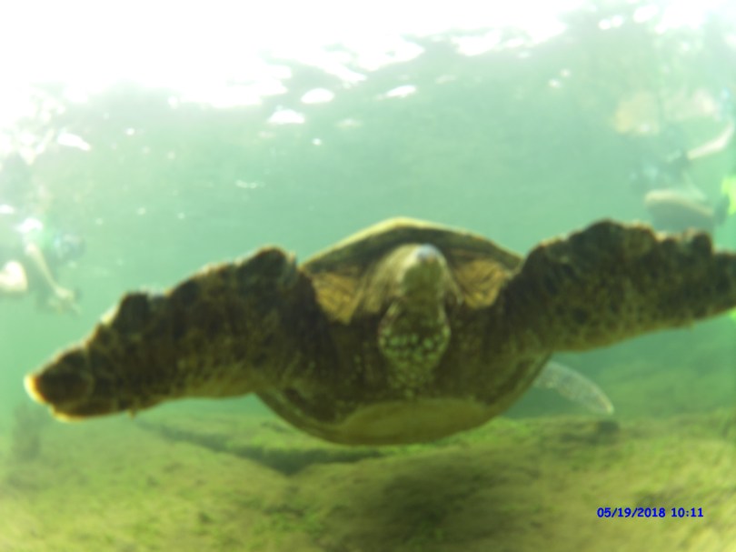 Photos avec une tortue des Galapagos « Charline et Vincent; Céline, Goupil et Naël; Mersou et Joël; Anne & Family »